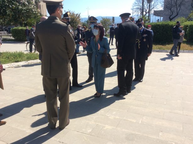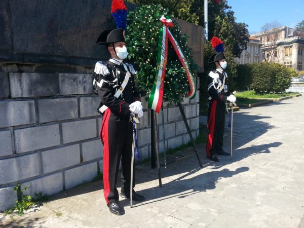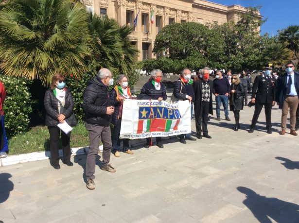 Oggi 25 Aprile, nel rispetto delle rigide limitazioni anti-Covid19, l’ANPI di Messina ha festeggiato la Liberazione dal nazi-fascismo partecipando e organizzando tre importanti manifestazioni: la prima, come consueto, è stata la deposizione di una corona di fiori al monumento dei Caduti di Piazza Municipio alla presenza del delegato del Presidente Provinciale dell’ANPI di Messina, Federico Martino, del Prefetto Cosima Di Stano, del Comandante Interregionale Carabinieri Sicilia e Calabria Generale di Corpo d’Armata Gianfranco Cavallo e del Sindaco di Messina Cateno De Luca. Presenti in piazza un numero consistente di rappresentanti delle Forze dell’ordine e delle Forze Armate.