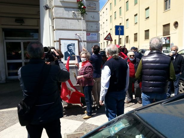 Il terzo momento si è svolto alle ore 12,00 a Piazza Francesco Lo Sardo / Piazza del Popolo, dove, dopo la lettura dell’elenco dei nomi dei Partigiani messinesi, ci si è spostati sotto la targa della piazza dedicata al Lo Sardo, per porre anche qui un mazzo di fiori all’uomo che pagò con il carcere e la vita la sua militanza antifascista e comunista.