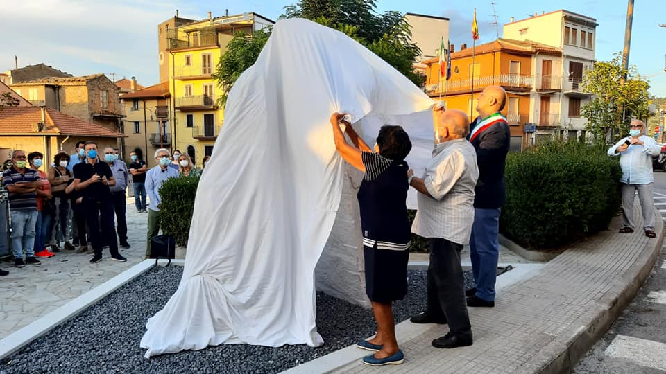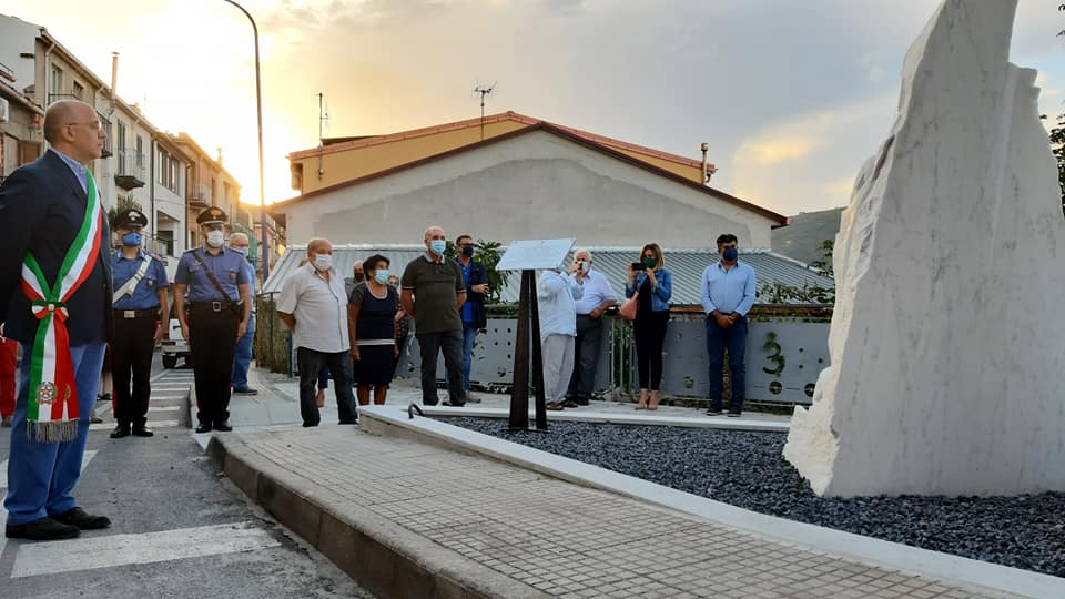 Storia di paese? Sì, certo, ma anche storia nazionale. Su questo, orgogliosamente, ha insistito il sindaco Salvino Fiore nel breve discorso pronunciato prima della scopertura del monumento. E che monumento! L’opera, in marmo bianco di Carrara, è del maestro Milo Floramo, che ha impresso nella pietra tutta la sua sensibilità artistica e al contempo il suo impegno civico.