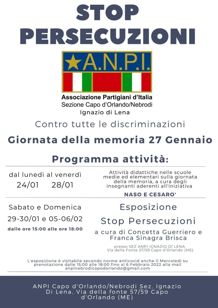 25 gennaio 2022 Senza categoria STOP PERSECUZIONI: La Giornata della Memoria dell’ANPI di Capo D’Orlando sez. “Ignazio di Lena” Posted by ecopolisanpi Condividi: Fai clic per condividere su X (Si apre in una nuova finestra) X Fai clic per condividere su Facebook (Si apre in una nuova finestra) Facebook Fai clic per condividere su WhatsApp (Si apre in una nuova finestra) WhatsApp Mi piace Caricamento... Correlati