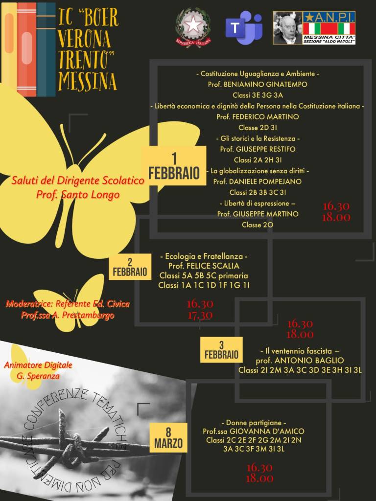 30 gennaio 2022 Senza categoria Al via le Conferenze Tematiche “PER NON DIMENTICARE” all’I.C. “Boer – Verona Trento” di Messina Posted by ecopolisanpi Locandina programma Condividi: Fai clic per condividere su X (Si apre in una nuova finestra) X Fai clic per condividere su Facebook (Si apre in una nuova finestra) Facebook Fai clic per condividere su WhatsApp (Si apre in una nuova finestra) WhatsApp Mi piace Caricamento... Correlati
