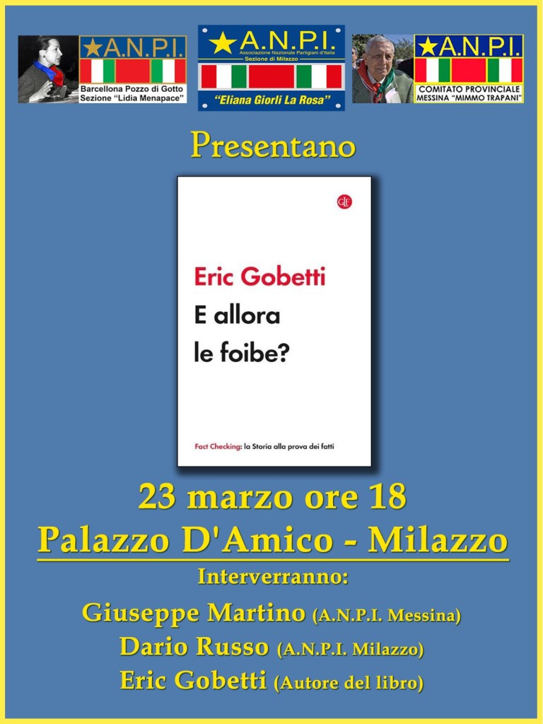 Il 23 marzo, alle ore 18, preso Palazzo D’amico a Milazzo, l’ANPI presenta l’ultimo libro di Eric Gobetti, “E allora le foibe?”. Presente l’autore.