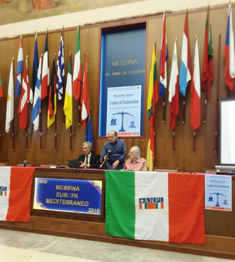 Martedì 24 ottobre, presso il Salone delle Bandiere della Casa Comunale, ha avuto luogo l’incontro, organizzato dall’ANPI di Messina e introdotto dal Presidente provinciale Pippo Martino, su “Lo spettro del presidenzialismo”, che ha visto protagonista il noto costituzionalista Michele Ainis, nato e formatosi a Messina, già ordinario di Diritto Pubblico, membro della “Autorità garante della concorrenza e del mercato”, chiamato dall’ANPI messinese a trattare una tematica di estrema attualità, concernente un’ipotesi di sostanziale mutamento dell’attuale assetto costituzionale italiano.