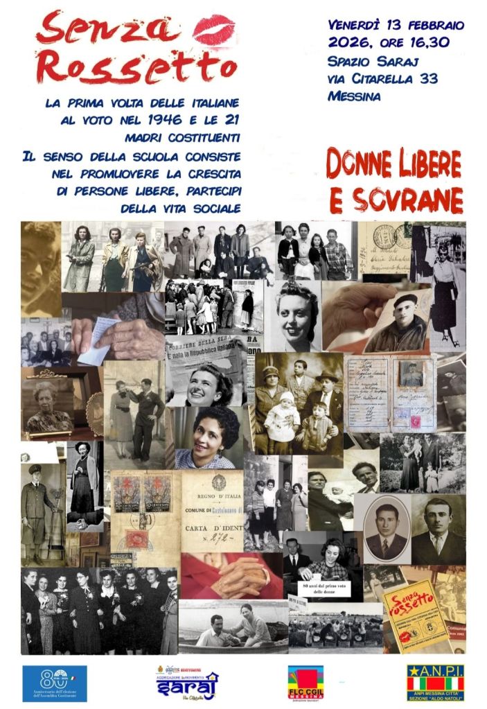 Venerdì 13 febbraio, ore 16,30 allo Spazio Saraj in via Citarella, 33 (prossimità incrocio tra Viale S. Martino e Viale Europa) a Messina
